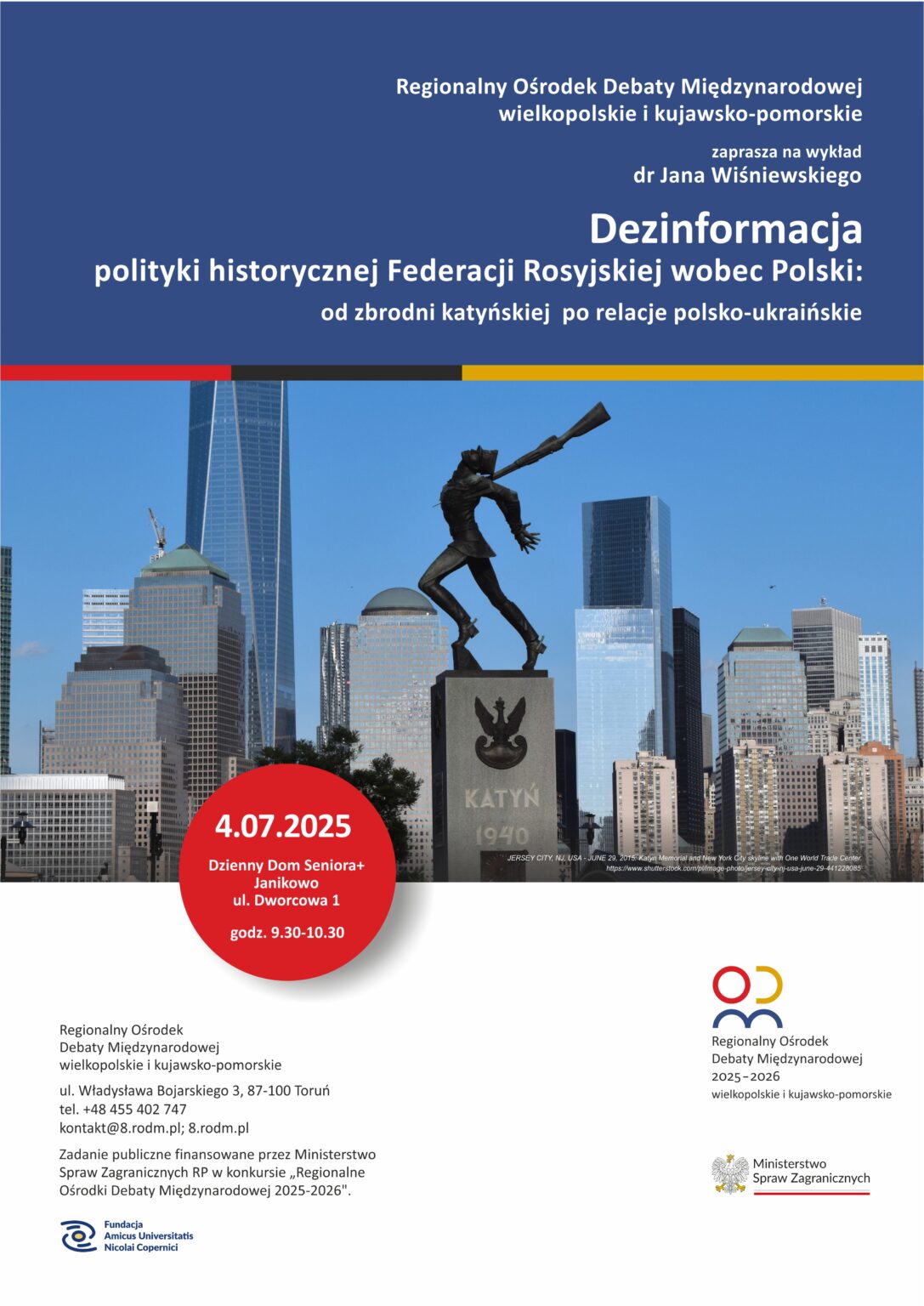 Na wspomniany aspekt zwrócił w swoim wystąpienie dr Jan Wiśniewski, koordynator RODM wielkopolskie i kujawsko-pomorskie, który poddał analizie charakterystyczne przejawy antypolskiej propagandy historycznej w niektórych mediach rosyjskich oraz pracach historycznych, co znajduje odzwierciedlenie w bieżącej polityce Moskwy. Bardzo dziękujemy za zaproszenie do Janikowa.